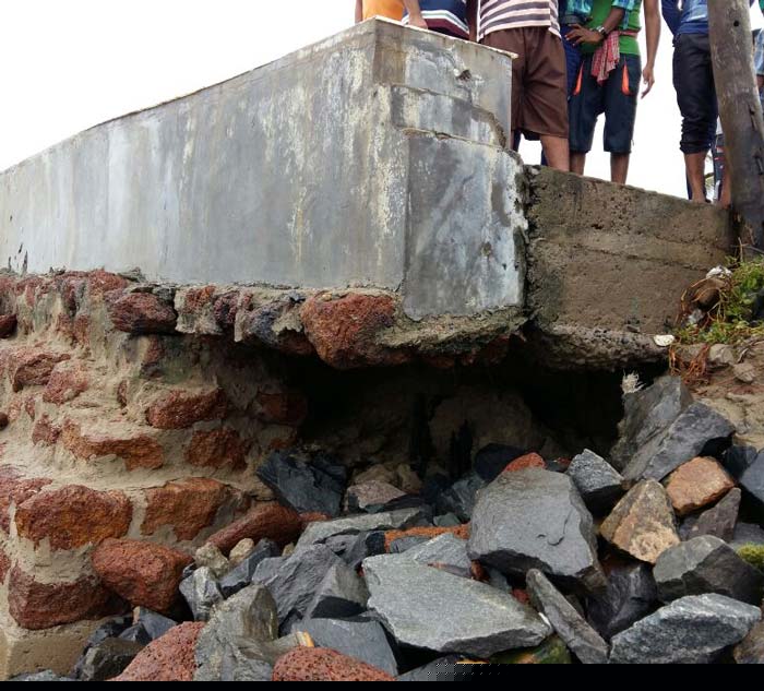 স্থানীয় সূত্রে খবর, বৃহস্পতিবার রাতের প্রবল জলোচ্ছ্বাসে সেতুর একাংশ ভেঙে পড়ে। জলের ধাক্কায় সেতুর নীচের গ্রানাইট পাথর সরে যাওয়াতেই এই বিপত্তি বলে দাবি গ্রামবাসীদের। জলোচ্ছ্বাসের পাশাপাশি সমস্যা বাড়িয়েছে প্রবল ঝোড়ো হাওয়া।