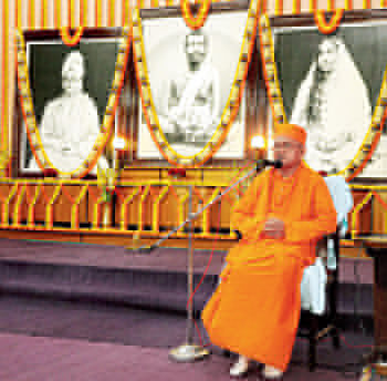 বর্ষপূর্তি উদ্‌যাপন অনুষ্ঠানে বক্তৃতা দিচ্ছেন ভাইস প্রেসি়ডেন্ট স্বামী প্রভানন্দ। বক্তৃতা দেন বিচারপতি
