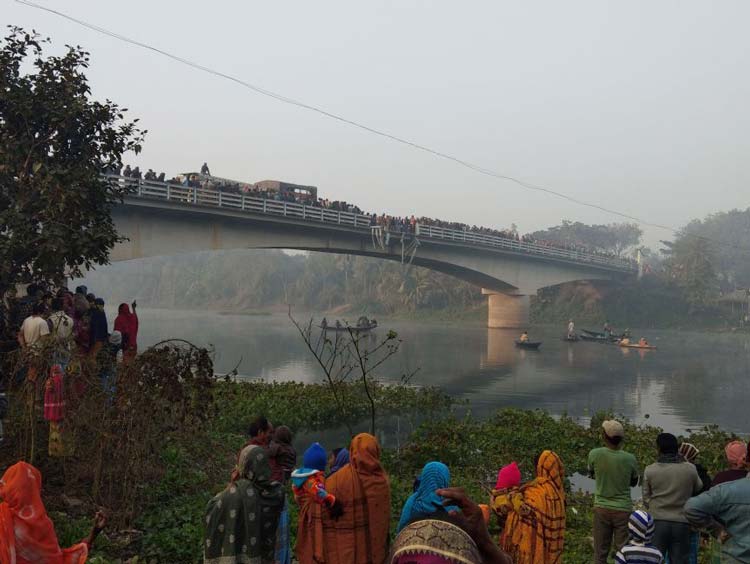 এ দিন দুর্ঘটনার পর পরই স্থানীয় লোকজন জল থেকে ১০ জনকে উদ্ধার করেন। তার মধ্যে ৭ জন পুরুষ এবং ৩ জন মহিলা। উদ্ধারের পর এক বৃদ্ধা হৃদরোগে আক্রান্ত হয়ে মারা যান।