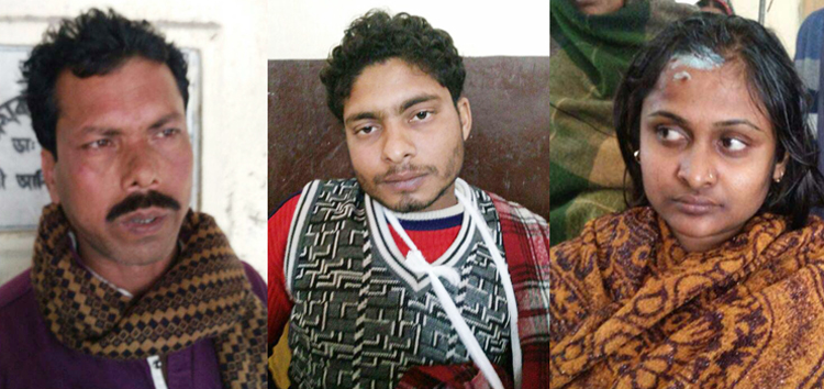 উদ্ধার হওয়া তিন যাত্রী। (বাঁ দিক থেকে) বাবর আলি শাহ, রিপন মণ্ডল, মৌমিতা মণ্ডল।