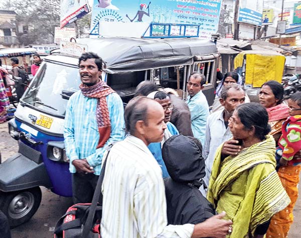 বাস নেই। ট্রেকারে উঠতে হুড়োহুড়ি। নিজস্ব চিত্র।