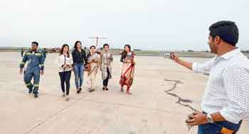 সরকারি অতিথিরা আসবেন বলে এ দিন নিরাপত্তার বেশ কড়াকড়ি ছিল বিমানবন্দরে। এখান থেকে ২ নম্বর জাতীয় সড়কের দূরত্ব প্রায় তিন কিলোমিটার। যোগাযোগের জন্য কোনও নির্দিষ্ট ব্যবস্থা নেই। নিরাপত্তার দায়িত্বে থাকা আধিকারিক বিনোদ ভাট বলেন, ‘‘হেলিকপ্টারের যাত্রীদের জন্য সাময়িক ব্যবস্থা আছে। দরকার হলে সেটি ব্যবহারের কথা ভাবা হবে।’’ বিমানবন্দর থেকে জাতীয় সড়কের সংযোগকারী রাস্তা এখনও অসম্পূর্ণ। সেখানে আলোও নেই।