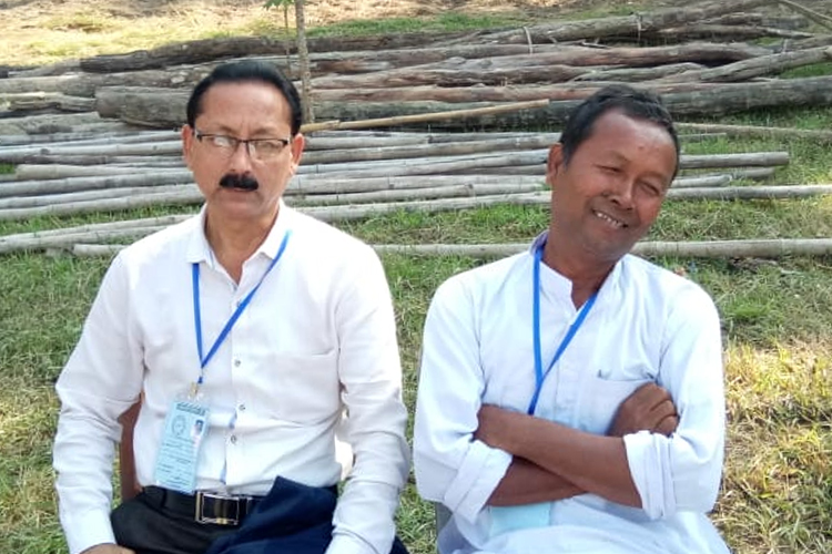 কালিয়াগঞ্জে একসঙ্গে তৃণমূল প্রার্থী তপন দেবসিংহ ও বিজেপি প্রার্থী কমলচন্দ্র সরকার। — নিজস্ব চিত্র