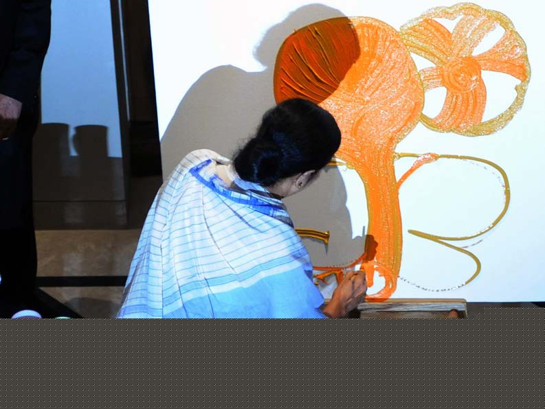 ছবি আঁকছেন মুখ্যমন্ত্রী।—ফাইল চিত্র।