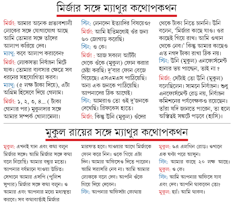 • পরে ম্যাথুর সঙ্গে যোগাযোগ হয় তৃণমূলের বিভিন্ন নেতা-নেত্রী এবং মির্জার।