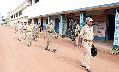 সবং কলেজে পুলিশের টহল।