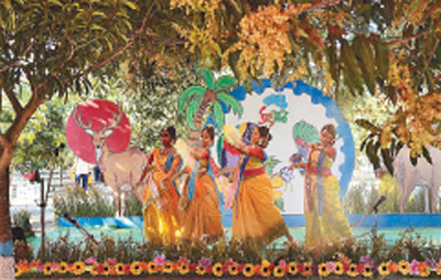 আপ্লুত শ্রোতারা আনন্দে উথালপাথাল। টানা উলুধ্বনিতে ডুবে গেল কীর্তনের সুর। বিগ্রহের সামনে রাখা পাত্র থেকে মুঠো মুঠো আবির উড়তে লাগল। সুগন্ধি আবিরে গোলাপি বাতাসে বসন্ত আওল রে।