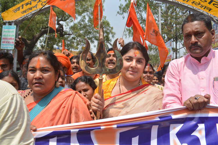 রামপুরহাটে বিজেপির রাম নবমীতে বিজেপি নেত্রী লকেট চট্টোপাধ্যায়। —ফাইল ছবি