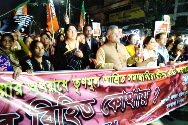 শুরু হয়েছিল নেতাজি ভবন মেট্রো স্টেশন থেকে। খড়দহে বিজেপি কর্মীর স্ত্রীকে ‘গণধর্ষণ’ কাণ্ডের এর প্রতিবাদে এ দিন প্রতীকী মিছিলের ডাক দেয় বিজেপির মহিলা মোর্চা। কর্মসূচি ছিল, মোমবাতি মিছিল করে মুখ্যমন্ত্রী মমতা বন্দ্যোপাধ্যায়ের কালীঘাটের বাড়ি পর্যন্ত গিয়ে ওই মিছিল শেষ হবে। শামিল হন বিজেপির রাজ্য সভাপতি দিলীপ ঘোষ, মহিলা মোর্চার রাজ্য সভাপতি লকেট চট্টোপাধ্যায়, দুই রাজ্য সাধারণ সম্পাদক সায়ন্তন বসু, দেবশ্রী চৌধুরীর মতো নেতানেত্রীরা। বিকেল ৫টা নাগাদ মিছিল শুরু হয়।