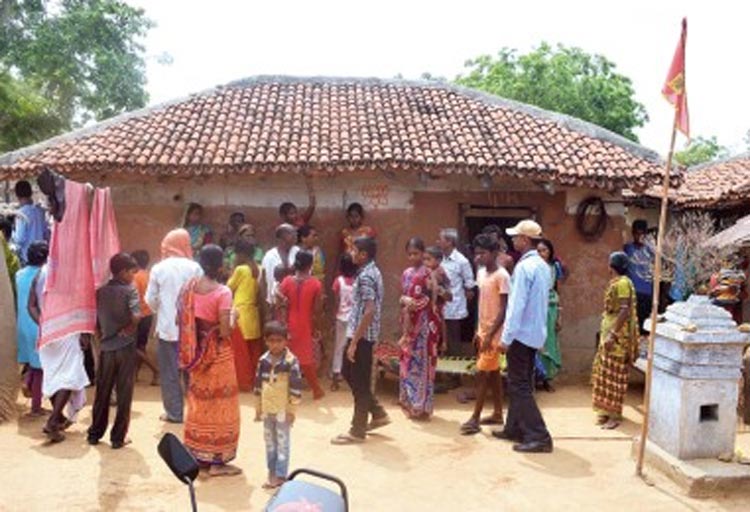 ত্রিলোচনের বাড়ির সামনে প্রতিবেশীদের ভিড়। নিজস্ব চিত্র।