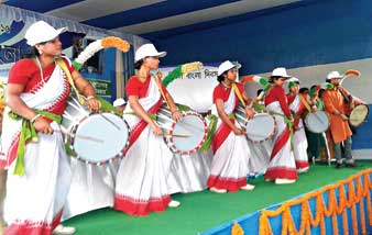বৃহস্পতিবার নিমর্ল বাংলা দিবস উপলক্ষে বারাসত স্টেডিয়ামের অনুষ্ঠান।—নিজস্ব চিত্র।
