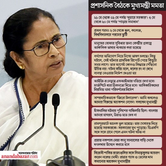মমতা এ দিন স্পষ্ট করে দেন যে, যত বড় রাজনৈতিক নেতাই হোন না কেন, দুর্নীতিতে নাম জড়ালে কাউকে ছাড়া যাবে না। বিশেষত অবৈধ বালি তোলা, তোলাবাজি, চাকরি দেওয়ার নাম করে টাকা তোলার মতো অভিযোগ এলে যে দলের যত বড় নেতাই হোন না কেন, তাঁদের বিরুদ্ধে কড়া পদক্ষেপ করতে হবে পুলিশকে।