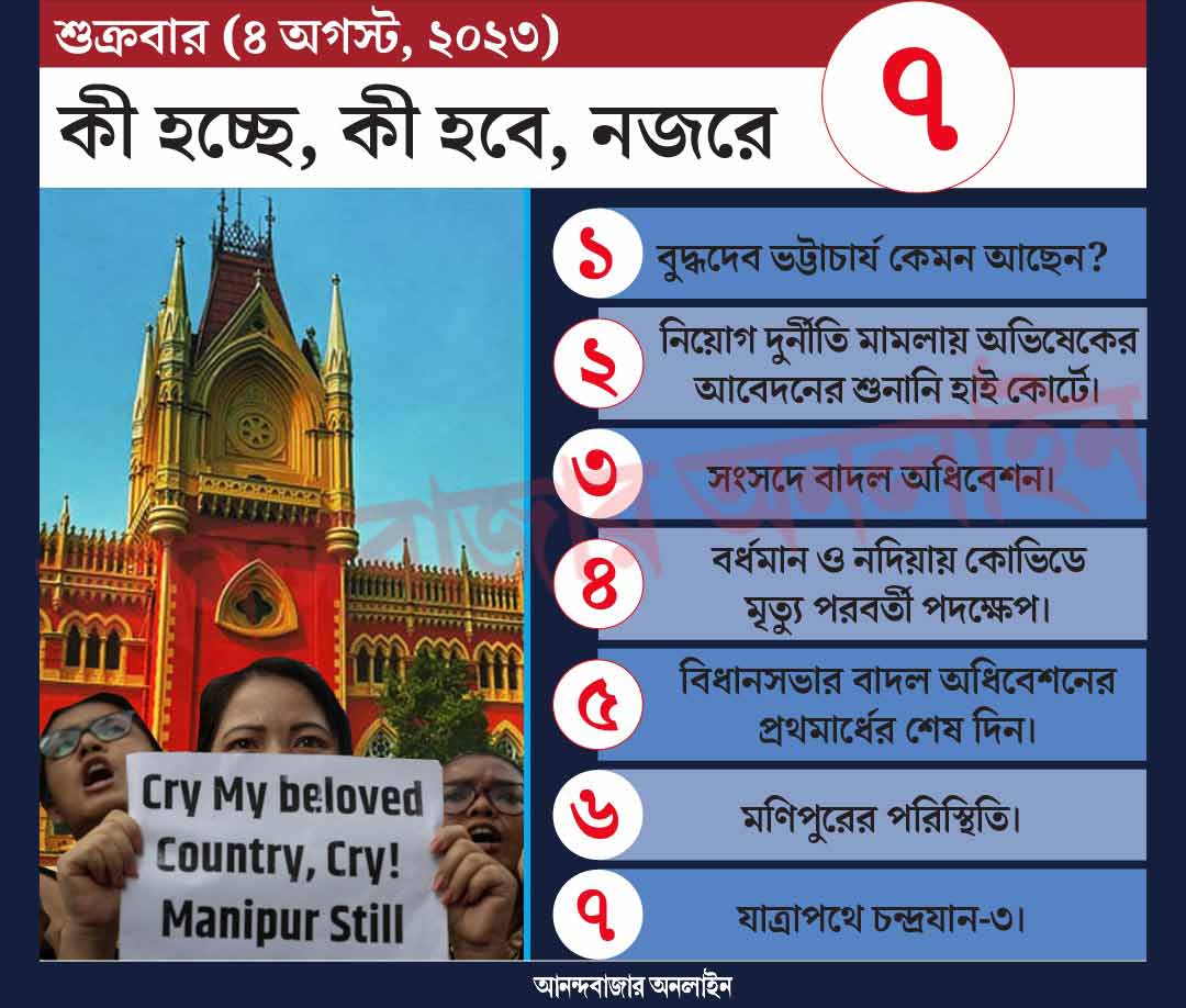 প্রায় তিন মাস হতে চলল উত্তেজনা অব্যাহত রয়েছে মণিপুরে। সে রাজ্যে গোষ্ঠী সংঘর্ষে দু'শো জনের কাছাকাছি মানুষের মৃত্যু হয়েছে। মণিপুরের ঘটনায় নজিরদারি করার কথা জানিয়েছেন প্রধানমন্ত্রী নরেন্দ্র মোদী। পরিস্থিতি নিয়ন্ত্রণে আনতে সে রাজ্যে ৩৫০ কোম্পানি কেন্দ্রীয় বাহিনী পাঠানো হয়েছে। সে রাজ্যের প্রশাসন জানিয়েছে, এখন পরিস্থিতি কিছুটা নিয়ন্ত্রণে। তবে পুরোপুরি শান্ত হয়নি। আজ সেখানকার পরিস্থিতির দিকে নজর থাকবে।