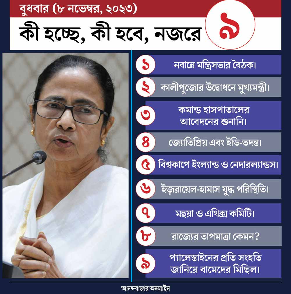 আজ রাজ্য মন্ত্রিসভার বৈঠক রয়েছে নবান্নে। এর আগে গত ১২ অক্টোবর শেষ মন্ত্রিসভার বৈঠক হয়েছিল। মুখ্যমন্ত্রী মমতা বন্দ্যোপাধ্যায়ের পায়ে চোটের কারণে তাঁর কালীঘাটের বাড়িতে বসেছিল ওই বৈঠক। ইডির হাতে রাজ্যের বনমন্ত্রী জ্যোতিপ্রিয় মল্লিকের গ্রেফতারির পর আজ মন্ত্রিসভার প্রথম বৈঠক। জ্যোতিপ্রিয়ের বন দফতর অন্য কারও হাতে দেওয়া হয় কি না সে দিকে আজ নজর থাকবে।