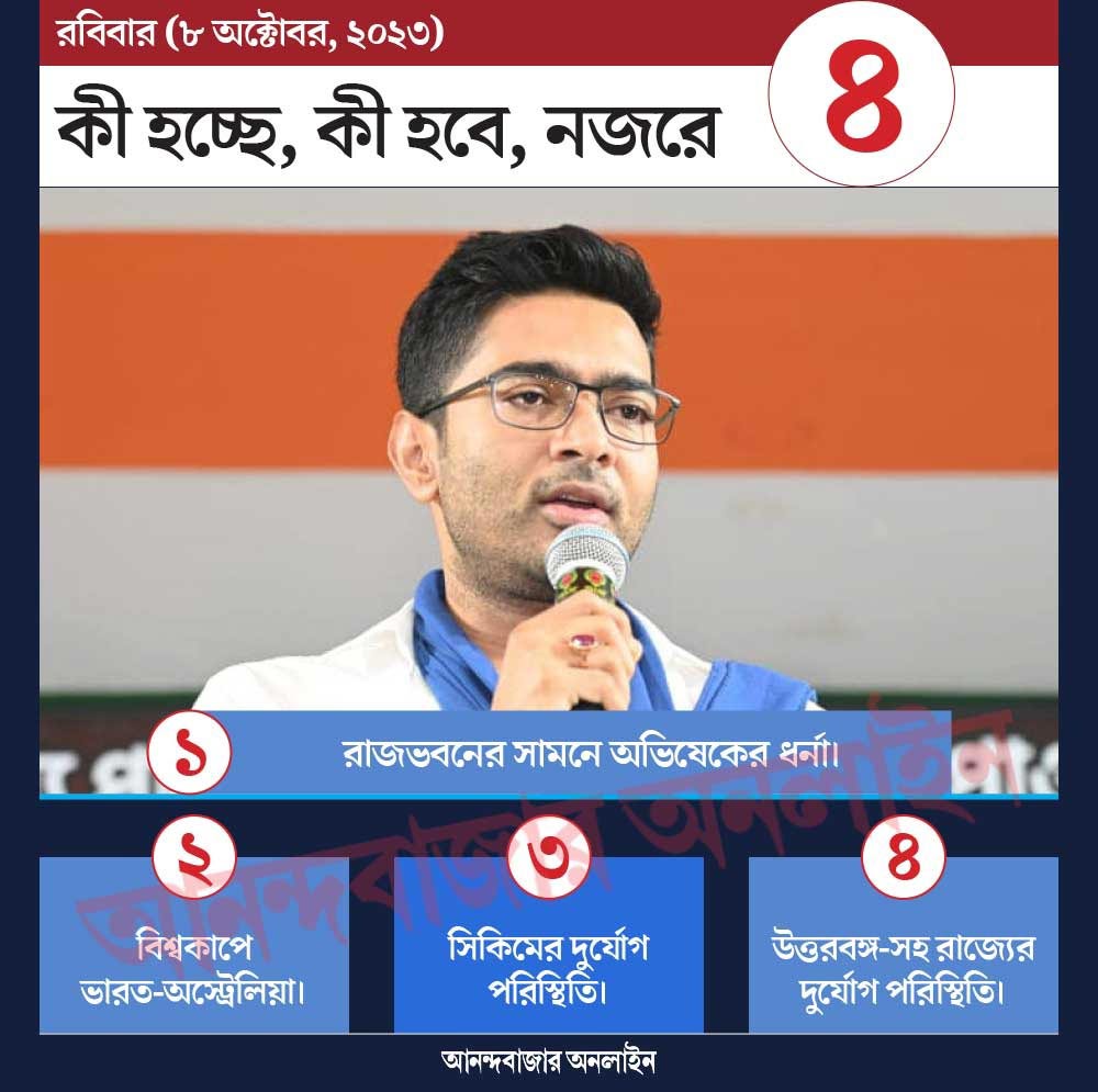 আজ অভিষেক বন্দ্যোপাধ্যায়ের ধর্নার চতুর্থ দিন। শনিবার দার্জিলিঙের রাজভবনে রাজ্যপালের সঙ্গে দেখা করেন সাংসদ কল্যাণ বন্দ্যোপাধ্যায়, মহুয়া মৈত্র ও রাজ্যের পঞ্চায়েতমন্ত্রী প্রদীপ মজুমদার। কেন্দ্রীয় বঞ্চনা ও রাজ্যের পাওনা নিয়ে রাজ্যপাল সিভি আনন্দ বোসের সঙ্গে কথা হয় তাঁদের। তবে আনন্দ বোস কলকাতায় না ফেরা অবধি ধর্না চালিয়ে যাবেন বলে স্পষ্ট করে দিয়েছেন অভিষেক।