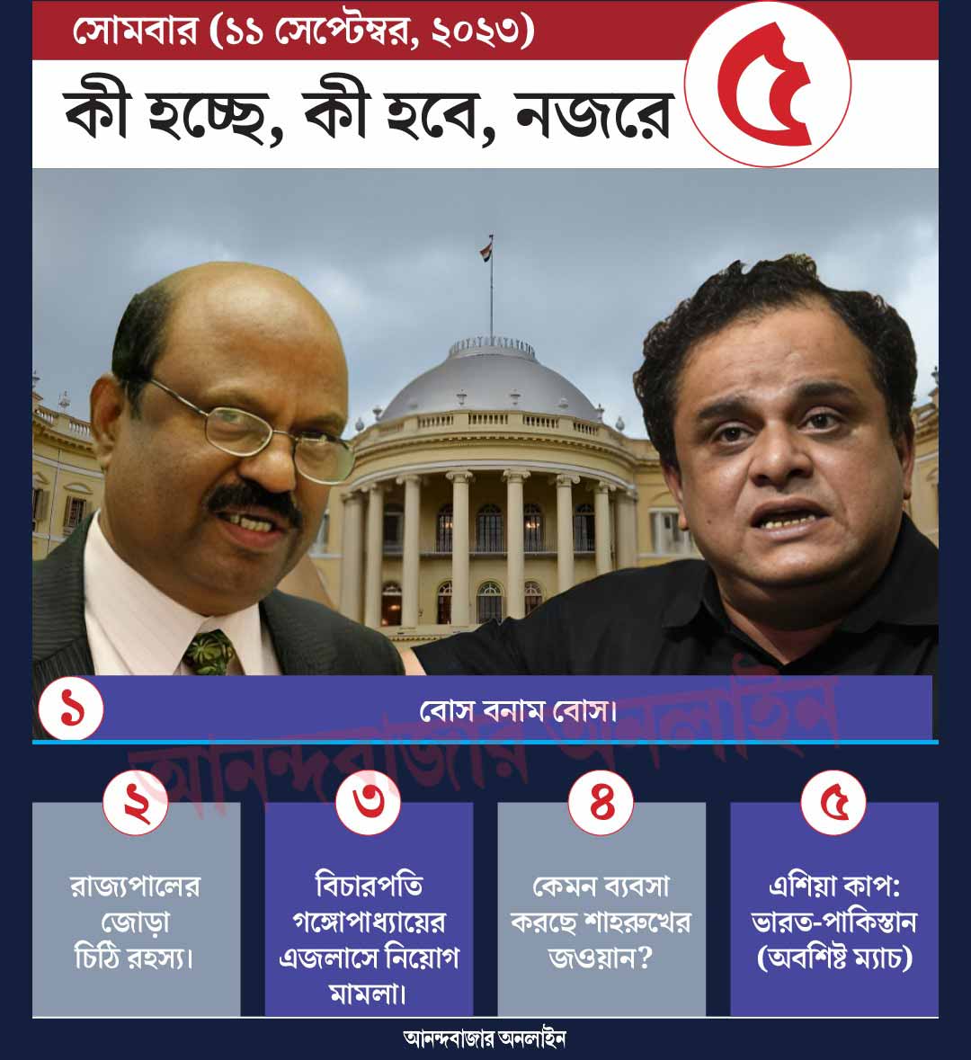 রাজ্যপাল বোস বনাম শিক্ষামন্ত্রী বোসের লড়াই চলছে টানা বেশ কয়েদিন ধরে। তা নিয়ে নতুন করে বিতর্ক তৈরি হয় শনিবার। রাজ্যপাল সকালে বলেছিলেন মধ্যরাতে ‘অ্যাকশন’ নেবেন। নিয়েছেনও। তবে মুখে কিছু না বলে পদক্ষেপের কথা না জানিয়ে মুখবন্ধ খামে দু’টি চিঠি পাঠিয়েছেন রাজ্যপাল সিভি আনন্দ বোস। তাতে কি শিক্ষামন্ত্রী ব্রাত্য বসুর দিকেই তির? এখনও জানা যায়নি। সোমবার জানা যায় কি না তা নিয়ে কৌতূহল থাকবে।