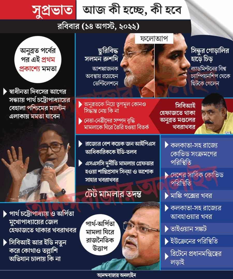 রবিবার (১৪ অগস্ট, ২০২২) কী হচ্ছে, কী হবে
