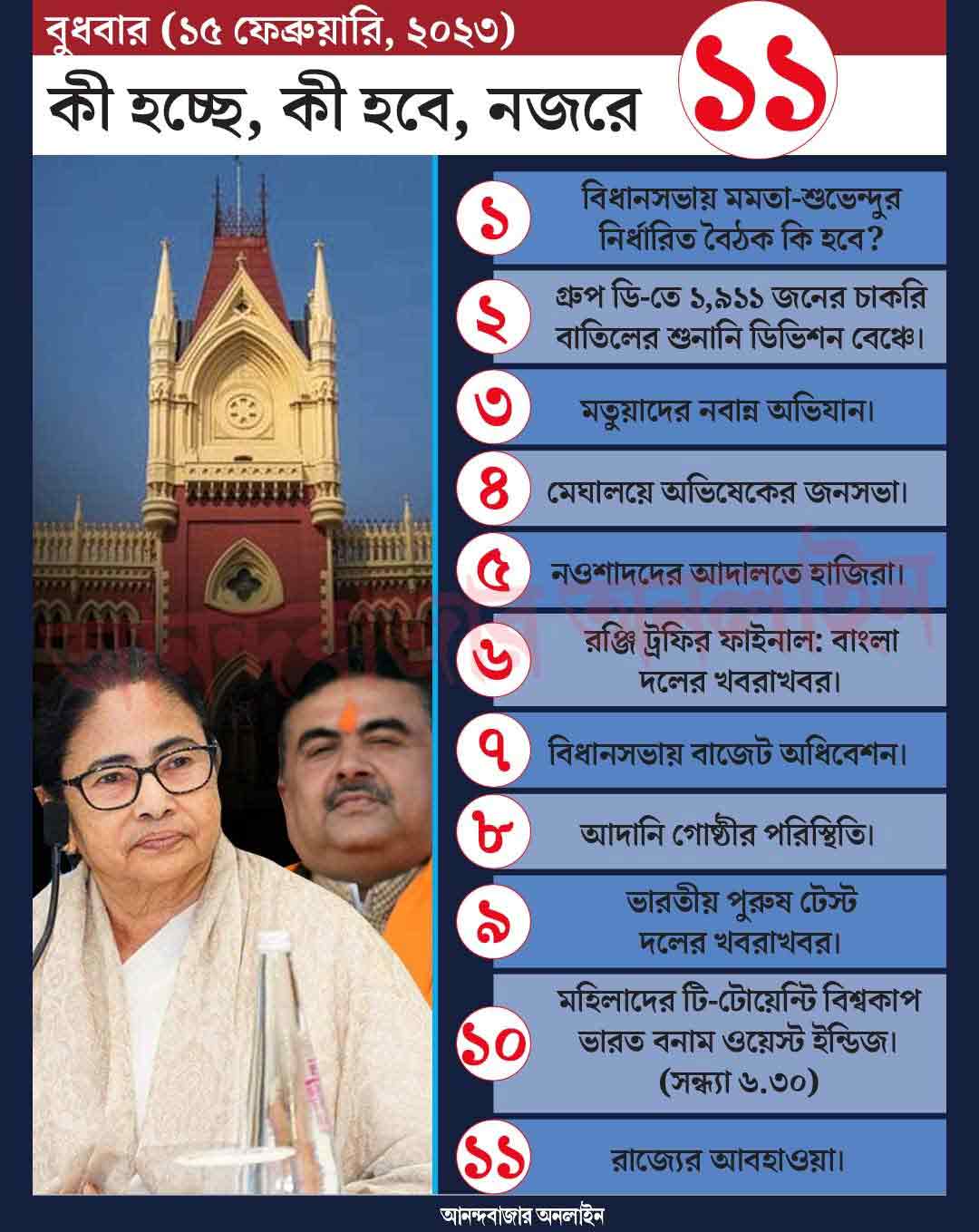 রাজ্যের মুখ্য তথ্য কমিশনার ঠিক করতে আজ, বুধবার বিধানসভায় মুখ্যমন্ত্রী মমতা বন্দ্যোপাধ্যায় এবং বিরোধী দলনেতা শুভেন্দু অধিকারীর বৈঠক হওয়ার কথা। পূর্ব নির্ধারিত এই বৈঠক হয় কি না আজ সে দিকে নজর থাকবে।