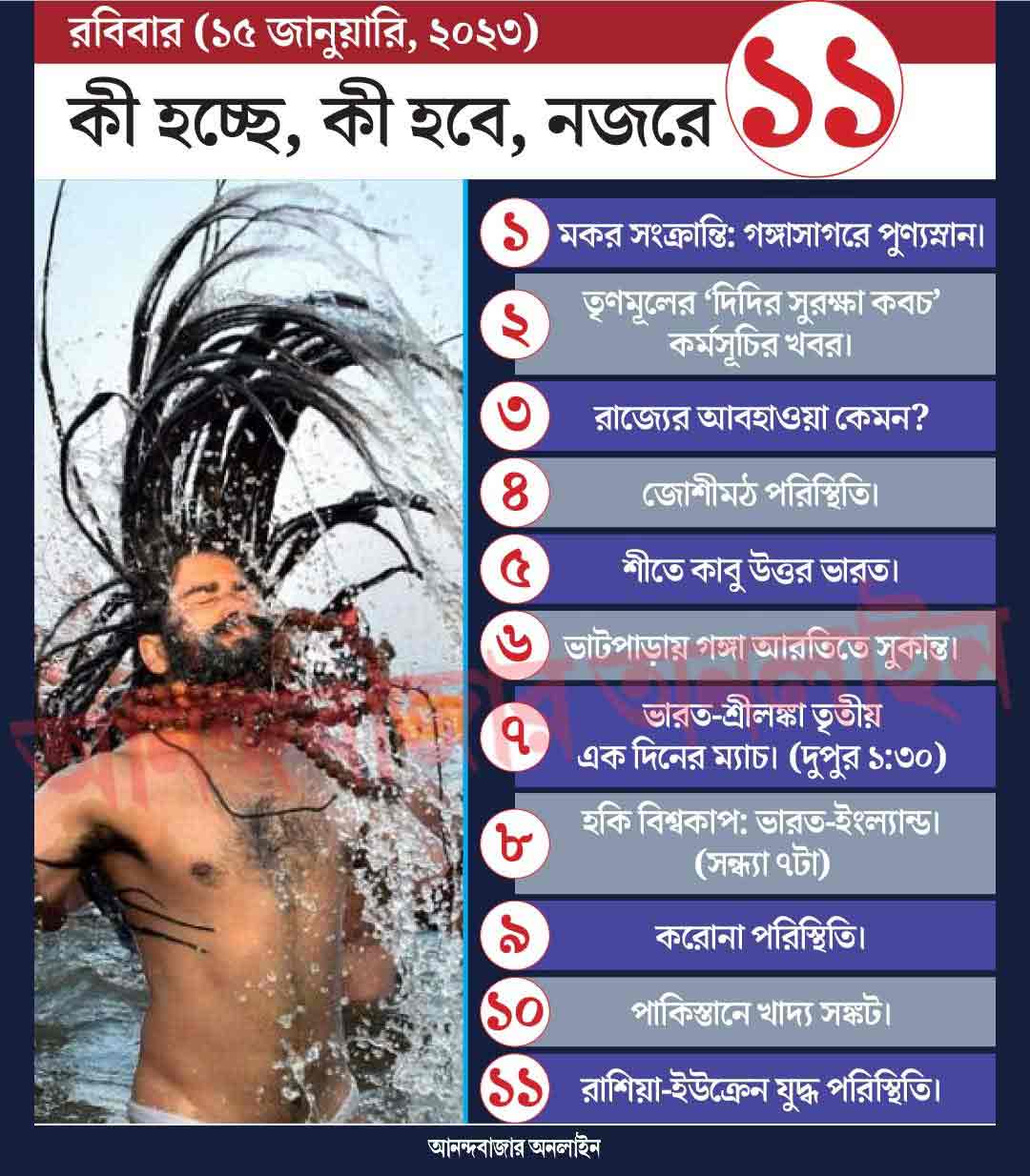 আজ, রবিবার মকর সংক্রান্তি। গঙ্গাসাগরে পুণ্যস্নানের জন্য পুণ্যার্থীদের ভিড়। আজ সন্ধ্যা ৬টা ৫৩ পর্যন্ত স্নানের সময়। নজর থাকবে এই খবরের দিকে।