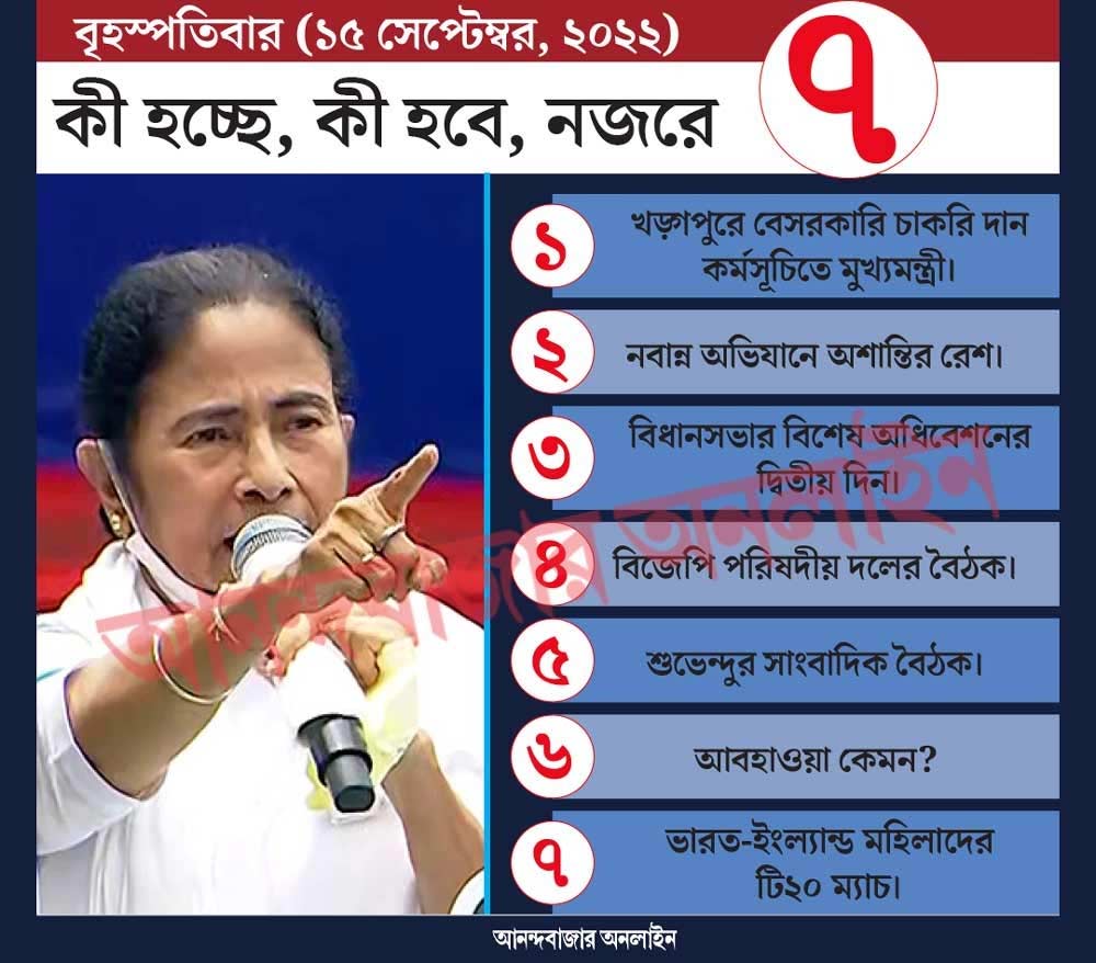 বুধবার থেকে বিধানসভার বিশেষ অধিবেশন শুরু হয়েছে। আজ দ্বিতীয় দিন। সেখানে কী হবে সে দিকে নজর থাকবে।