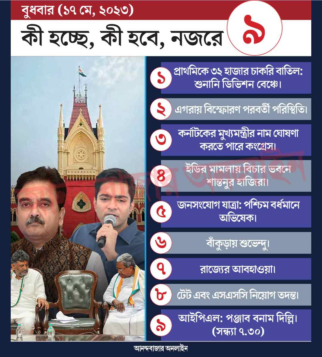 প্রাথমিক স্কুলে ৩২ হাজার শিক্ষকের চাকরি বাতিলের নির্দেশ দিয়েছেন বিচারপতি অভিজিৎ গঙ্গোপাধ্যায়। এই রায়কে চ্যালেঞ্জ করে প্রাথমিক শিক্ষা পর্ষদ এবং চাকরিচ্যুতরা ডিভিশন বেঞ্চের দ্বারস্থ হয়েছেন। মঙ্গলবারের পর আজ, বুধবারও সেখানে শুনানি রয়েছে।