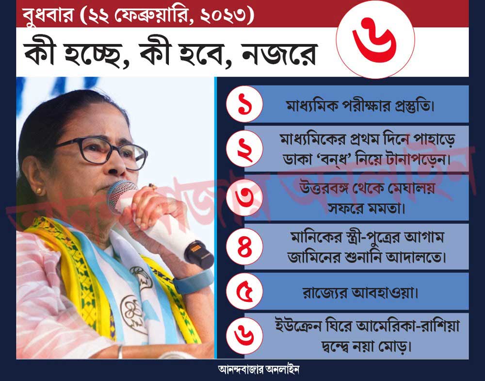 বৃহস্পতিবার থেকে শুরু হচ্ছে মাধ্যমিক পরীক্ষা। এ বার পরীক্ষার্থীর সংখ্যা ৬ লক্ষ ৯৮ হাজার ৭২৪। কড়া নজরদারিতে পরীক্ষা নেওয়া হবে বলে জানিয়েছে মধ্যশিক্ষা পর্ষদ। পরীক্ষা কেন্দ্রগুলিতে থাকবে সিসিটিভি এবং ভিডিয়োগ্রাফির ব্যবস্থা। পরীক্ষার আগের দিন অর্থাৎ, আজ বুধবার নজর থাকবে এই পরীক্ষা সংক্রান্ত বিভিন্ন খবরের দিকে।