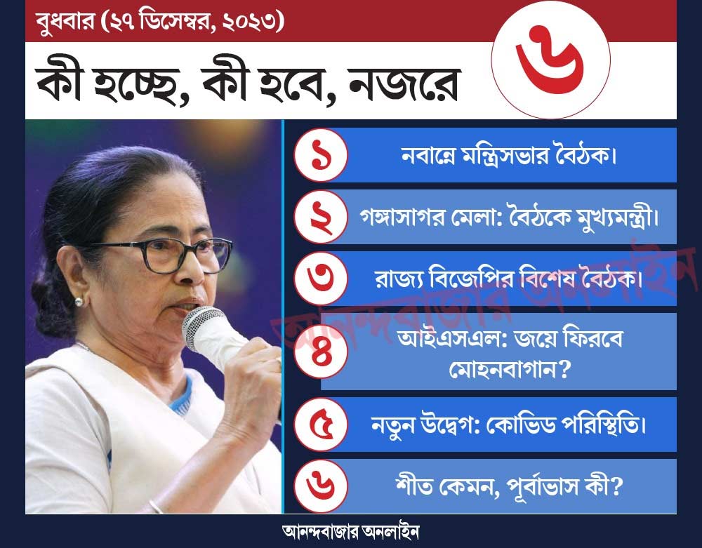 আজ মুখ্যমন্ত্রী মমতা বন্দ্যোপাধ্যায়ের নেতৃত্বে নবান্নে হবে রাজ্য মন্ত্রিসভার বৈঠক। ইংরেজি ক্যালেন্ডার অনুযায়ী চলতি বছরের শেষ মন্ত্রিসভার বৈঠক আজ। নজর থাকবে এই খবরে।