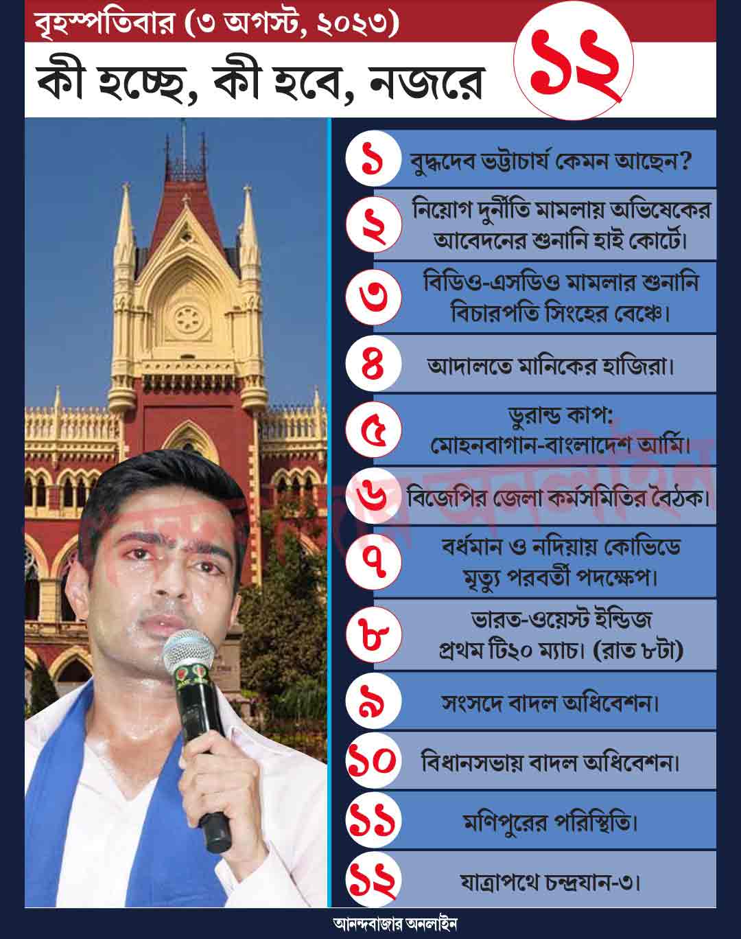 স্কুলে নিয়োগ দুর্নীতি মামলায় আজ অভিষেক বন্দ্যোপাধ্যায়ের আবেদনের শুনানি রয়েছে কলকাতা হাই কোর্টে। বিকেল সাড়ে ৪টে নাগাদ মামলাটির শুনানি হওয়ার কথা। নজর থাকবে আদালতের এই খবরের দিকে।