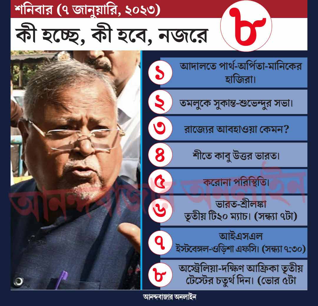 ফ্ল্যাট থেকে কোটি কোটি টাকা উদ্ধারের ঘটনায় রাজ্যের প্রাক্তন মন্ত্রী পার্থ চট্টোপাধ্যায় এবং তাঁর ‘ঘনিষ্ঠ’ হিসাবে পরিচিত অর্পিতা মুখোপাধ্যায়কে গ্রেফতার করেছিল এনফোর্সমেন্ট ডিরেক্টরেট (ইডি)। এখন তাঁরা জেল হেফাজতে রয়েছেন। আজ, শনিবার তাঁদের আদালতে হাজির করানো হবে। অন্য দিকে, নিয়োগ দুর্নীতিতে মানিক ভট্টাচার্যকেও গ্রেফতার করেছিল ইডি। তাঁকেও আজ আদালতে হাজির করানো হবে। এই তিন জনের জন্য আদালত কী নির্দেশ দেয় সে দিকে নজর থাকবে।