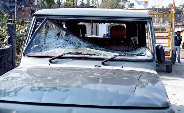 ভাঙচুর হওয়া বিধায়কের গাড়ি।নিজস্ব চিত্র।