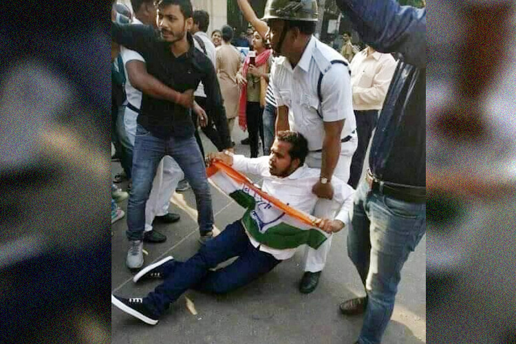 কংগ্রেস কর্মীদের বিক্ষোভ। —নিজস্ব চিত্র।