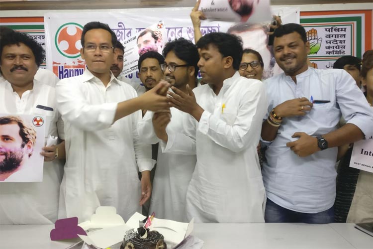 বিধান ভবনে রাহুল গাঁধীর জন্মদিন পালন করছেন গৌরব।— নিজস্ব চিত্র।