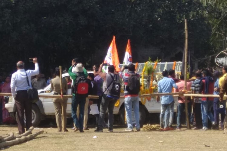 ময়নাতদন্তের পর সত্যজিৎবাবুর দেহ নিয়ে আসা হয় হাঁসখালিতে। —নিজস্ব চিত্র।
