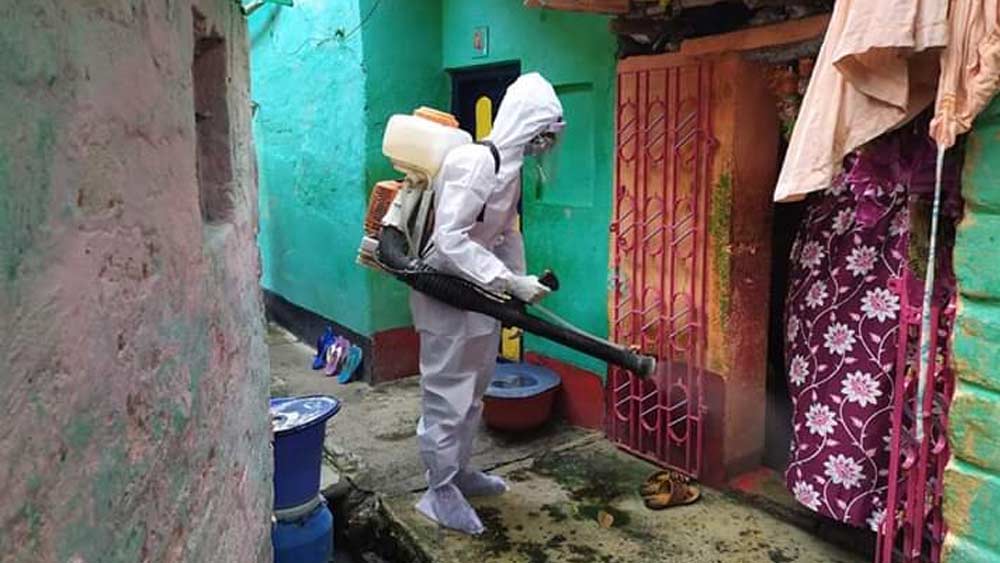 পুরসভা সূত্রে খবর, গত কয়েক দিন ধরে বিভিন্ন বস্তি এলাকায় গিয়ে বাসিন্দাদের শারীরিক পরীক্ষা করা হচ্ছে। থার্মাল স্ক্যানিংয়ের পাশাপাশি উপসর্গ থাকলে তাঁর লালরসের নমুনাও নেওয়া হচ্ছে। রাউন্ড ট্যাঙ্ক রোড, জেলিয়া পাড়া, লিচুবাগান বস্তি, যোগমায়া বস্তি, কালী কুণ্ডু লেন, শরৎ চ্যাটার্জি রোড, হাট লেন, বাদামতলা বাইলেন, কালীতলা, পদ্ম ঘোষ লেন, মীর পাড়া-সহ ১৫টি এলাকায় নমুনা সংগ্রহের কাজ চলছে। এ ছাড়া ওই এলাকার ব্যাপক পরিমাণে জীবাণুমুক্ত করার কাজ চলছে পুরসভার তরফে।
