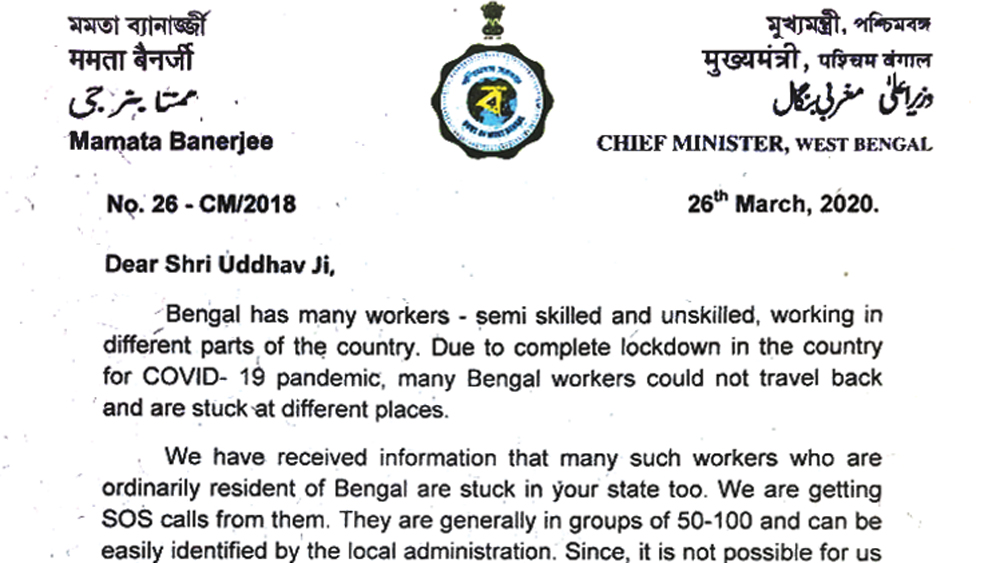 গত কালই ওই শ্রমিকদের পক্ষ থেকে একটি ভিডিয়ো বার্তা পশ্চিমবঙ্গের মুখ্যমন্ত্রীর কাছে পৌঁছয়। ভিডিয়োটিতে দেখা যায়, মুখ্যমন্ত্রীকে তাঁরা আবেদন করছেন, রাজ্যে ফিরিয়ে নিয়ে যাওয়ার জন্য। লকডাউনের ফলে কাজ বন্ধ হয়ে যাওয়ায় তাঁদের হাতে অর্থ নেই, খাবার কেনার উপায় নেই। প্রায় ৭০০ শ্রমিক এ ভাবে আটকে রয়েছেন বলে জানানো হয়। মুখ্যমন্ত্রী এর পরেই রাজ্যের মুখ্যসচিবকে বলেন, মহারাষ্ট্রের মুখ্যসচিবের সঙ্গে যোগাযোগ করে বিষয়টির সুরাহা করতে। সেই মতো মহারাষ্ট্র সরকারকে জানিয়ে দেওয়া হয়। তার পরে আজ সকালে মমতা বন্দ্যোপাধ্যায় চিঠি লেখেন মহারাষ্ট্রের মুখ্যমন্ত্রীকে। সেখানে তিনি অনুরোধ করেন, ওই রাজ্যে কাজ করতে যাওয়া, বাংলার বিপদগ্রস্ত শ্রমিকদের পাশে থাকার জন্য। ওই একই বয়ানে তিনি চিঠি পাঠান আরও ১৭টি রাজ্যের মুখ্যমন্ত্রীকে। চিঠির পাশাপাশি দলের রাজ্যসভার নেতা ডেরেক ও’ব্রায়েনকেও মমতা নির্দেশ দেন, রাজনৈতিক স্তরে শিবসেনার সঙ্গে যোগাযোগ করতে। এর দু’ঘণ্টার মধ্যেই প্রয়োজনীয় পদক্ষেপ করে মহারাষ্ট্র সরকার।