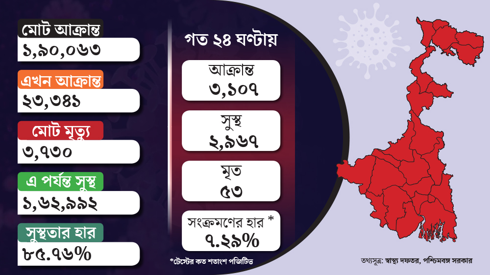 • কোভিড-১৯ আক্রান্তদের অ্যাম্বুল্যান্স পরিষেবা সংক্রান্ত হেল্পলাইন নম্বর: ০৩৩-৪০৯০২৯২৯)