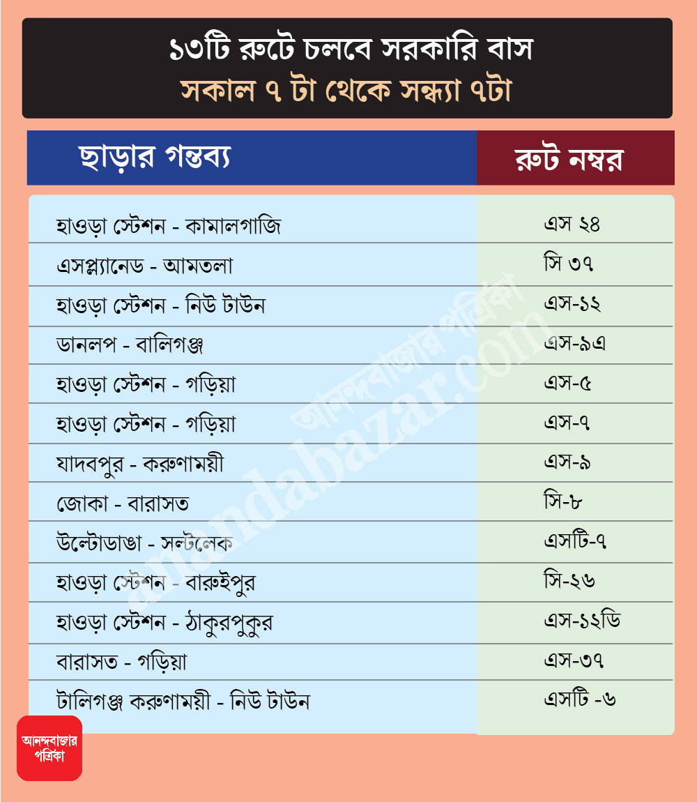 যাত্রীদের দাবি ছিল, সময়ে অফিস বা গন্তব্যে পৌঁছতে হলে বাসের সংখ্যা বাড়াতে হবে। গাড়ি ছাড়ার ব্যবধানও কমাতে হবে। যাত্রীদের অসুবিধার কথা মাথায় রেখে এবং যাতে বাসের মধ্যে ‘সোশ্যাল ডিস্টেন্সিং’ বজায় থাকে, সে কারণেই ওই রুটগুলিতে বাসের সংখ্যা বাড়ানো হচ্ছে। পরবর্তী ক্ষেত্রে আরও বাস চালানো হবে। বাড়তে পারে রুটের সংখ্যাও। জরুরি পরিষেবার সঙ্গে যাঁরা যুক্ত, যাঁদের অফিসে যেতে হচ্ছে এবং ভিন্রাজ্য থেকে যাঁরা ফিরছেন, মূলত তাঁদের জন্যই এই বাস পরিষেবা চালু হয়েছে।