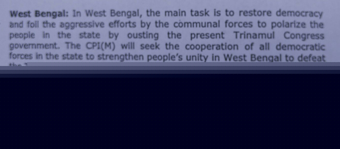 বিশাখাপত্তনম পার্টি কংগ্রেসে গৃহীত রাজনৈতিক লাইন মেনে কোনও ভাবেই কংগ্রেসের সঙ্গে সমঝোতা করা যাবে না বলে কেন্দ্রীয় কমিটিতে সওয়াল করেছিল প্রকাশ কারাট শিবির। সেই সঙ্গে কেরল ব্রিগেডের যুক্তি ছিল, তাদের রাজ্যে কংগ্রেসকে হারিয়ে এ বার বামেদের ক্ষমতায় আসার সম্ভাবনা প্রবল। এমতাবস্থায় বঙ্গে কংগ্রেসের সঙ্গে কোনও রকম সমঝোতা হলে তার বিরূপ প্রভাব দক্ষিণী রাজ্যে পড়বে। এই তীব্র আপত্তির মুখে কেন্দ্রীয় কমিটিতে বাংলার পরিস্থিতি বোঝাতে আপ্রাণ লড়াই করে গিয়েছেন সূর্যকান্ত মিশ্র, গৌতম দেবেরা। তাঁদের যুক্তি ছিল, বিরোধীরা আলাদা লড়লে ভোট ভাগ হয়ে মমতা বন্দ্যোপাধ্যায়ের সুবিধা হয়ে যাবে। অথচ বাংলায় গণতান্ত্রিক পরিবেশকেই ধ্বংস করছে তৃণমূল। বাংলার পরিস্থিতি যে সম্পূর্ণ অন্য রকম এবং তা অন্য কোনও রাজ্যের সঙ্গে তুলনীয় নয়, কারাটদের অবশেষে বোঝাতে পেরেছেন সূর্যবাবুরা। রাজ্যের নির্বাচনী কৌশলের চূড়ান্ত খুঁটিনাটি ঠিক করার ভার বাংলার রাজ্য কমিটির উপরেই ছেড়ে দিয়েছেন সীতারাম ইয়েচুরিরা। স্বয়ং ইয়েচুরিও ছিলেন বৃহত্তর ঐক্যের পক্ষে।