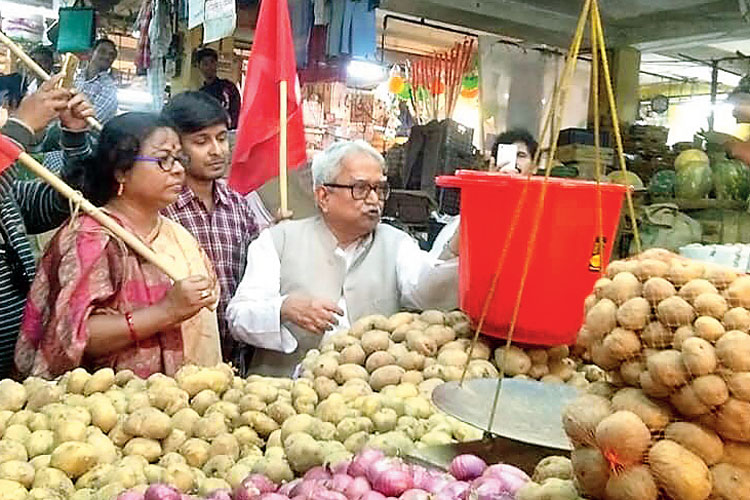 ব্রিগেডের জন্য লেক মার্কেটে চাঁদা তুলছেন বিমান বসু।নিজস্ব চিত্র।