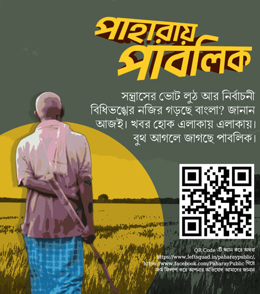 রাজ্য জুড়ে ব্লক এবং পঞ্চায়েত স্তরে দুর্নীতির তথ্য মানুষের কাছ থেকে সংগ্রহ করার লক্ষ্যে সিপিএম শুরু করেছিল ‘পাহারায় পাবলিক’ কর্মসূচি। এ বার তাদের ঘোষণা, নির্বাচনের বিধিভঙ্গ বা ভোটের দিন গোলমাল, ভোট লুট সংক্রান্ত যে কোনও অভিযোগের তথ্য মোবাইলে ‘পাহারায় পাবলিক’-এর নির্দিষ্ট ব্যবস্থায় জানাতে পারবেন সাধারণ মানুষ। তথ্য পেলে তা প্রাথমিক ভাবে যাচাই করে সিপিএম নেতৃত্ব জানাবেন রাজ্য নির্বাচন কমিশনকে। যেখানে প্রয়োজন, দলের তরফেও লোকজন পৌঁছে যাবেন। এই ঘোষণা করে মঙ্গলবার সিপিএমের রাজ্য সম্পাদক মহম্মদ সেলিম বলেছেন, ‘‘পুলিশ-প্রশাসনের একাংশের মদতে ভোট লুটের অপচেষ্টা ও নির্বাচনী বিধিভঙ্গের যে কোনও তথ্য সাধারণ মানুষ আমাদের এই ফর্মের মাধ্যমে জানাতে পারবেন। মানুষের পঞ্চায়েত গড়ার লড়াইয়ে বুথ আগলাবেন মানুষই। এ বার পাহারায় পাবলিক।’’ অভিযোগকারীর পরিচয় গোপন রাখা হবে বলে সেলিম জানিয়েছেন।