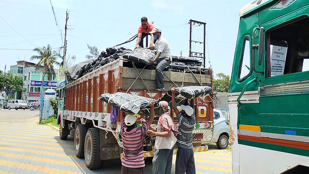 জেলায় পৌঁছল ত্রিপল-ত্রাণ। নিজস্ব চিত্র
