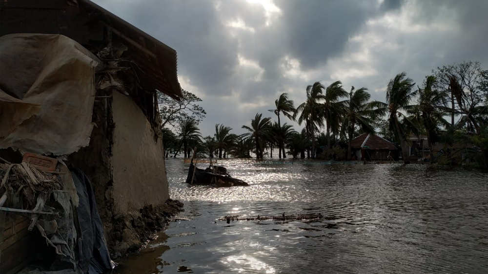 শনিবারের সুন্দরবনের সঙ্গে অনেকটা তফাত দক্ষিণ ২৪ পরগনার এই অঞ্চলের। আয়লার পরে যেমন সুন্দরবনের কঙ্কাল বেরিয়ে পড়েছিল, আমপানের পরে ফ্রেজারগঞ্জ, সাগর, পাথরপ্রতিমার কঙ্কাল তেমনই বেরিয়ে পড়েছে। মানুষের দুর্দশা ভয়াবহ চেহারা নিয়েছে। ঠিকই বলেছিল গোসাবার পরিতোষ। সমুদ্রের ধার ঘেঁষে গাছের পাতাগুলো হলুদ হয়ে গিয়েছে। ভারি অদ্ভুত! জগন্নাথ বলছিল, ঝড়ের কয়েক মিনিট আগে চারিদিক হলুদ হয়ে গিয়েছিল মিনিট কয়েকের জন্য। তার পর তীব্র বৃষ্টি শুরু হয়। ওদের মতে ‘অ্যাসিড বৃষ্টি’। বৃষ্টি থামে। কিছুক্ষণের গুমোট। তার পর রাক্ষসের মতো ঝড় ঢোকে স্থলভাগে। গলা ধরে ঘুরিয়ে দেওয়ার মতো একের পর এক গাছ ফেলতে থাকে। বিদ্যুতের খুঁটি। বাড়ির চাল। ঠেলা গাড়ি। ডাঙায় তুলে রাখা নৌকো।