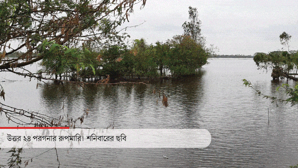 উত্তর ২৪ পরগনার রূপমারির ছবিটাও এক রকম। এখানকার কুমিরমারি, রূপমারি আর বাইনারা গ্রাম ভীষণ ভাবে ক্ষতিগ্রস্ত। এখনও জল নামেনি। জোয়ারের সময় কুমিরমারির কোথাও কোথাও চার-পাঁচ ফুট পর্যন্ত জল থাকছে।