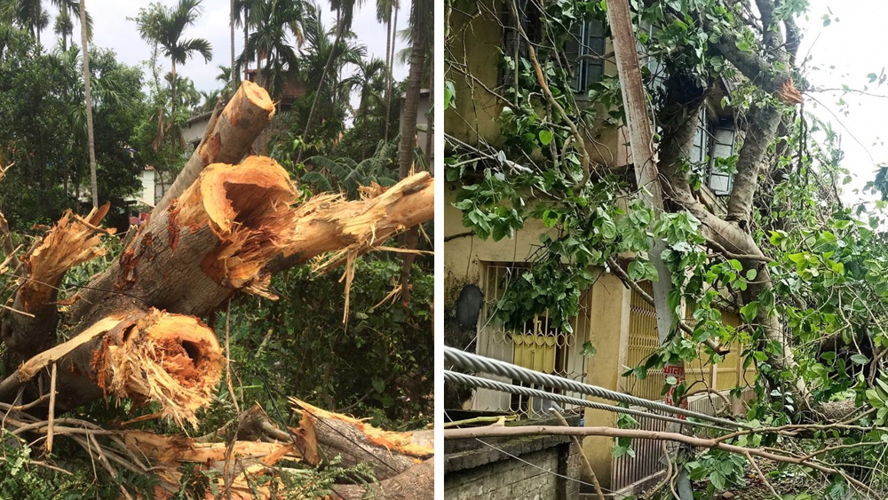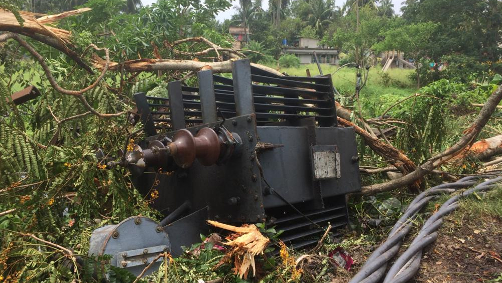 প্রায় ৪০০ বিদ্যুতের খুঁটি ভেঙে গিয়েছে। হাই টেনশন লাইনেরও খুঁটিও ভেঙেছে বহু।