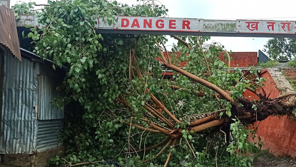 গাছ পড়ে আটকে গিয়েছে রাস্তা।