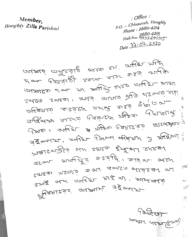 মুখ্যমন্ত্রীকে লেখা অভিযোগপত্র।