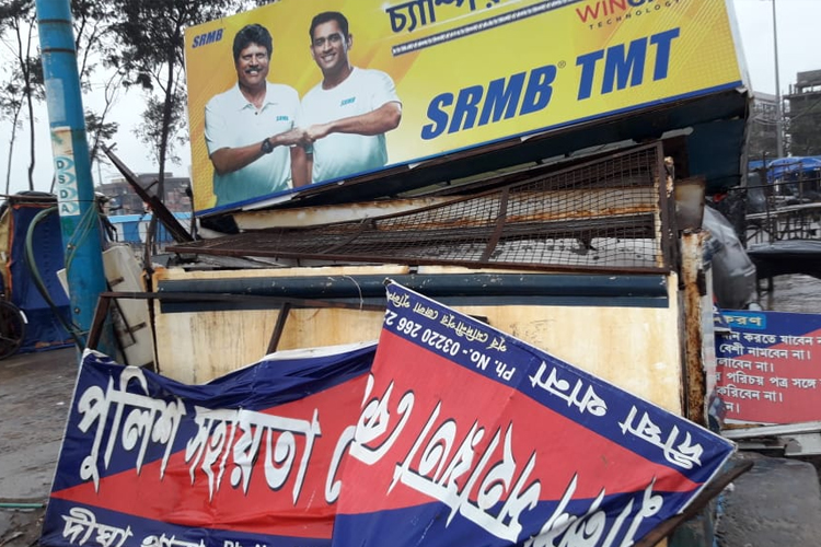 দিঘায় ঝড়ের দাপটে ভেঙে পড়েছে হোর্ডিং। নিজস্ব চিত্র।