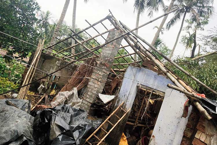 ভেঙেছে ঘরের চাল। নন্দকুমারের কুমোরআড়া এলাকায়।
