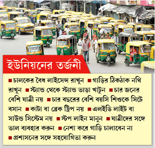 অটো-দৌরাত্ম্যের রাশ টেনে ধরতে ইউনিয়ন অবশেষে কিছু নিয়মবিধি ঘোষণা করল রবিবার।