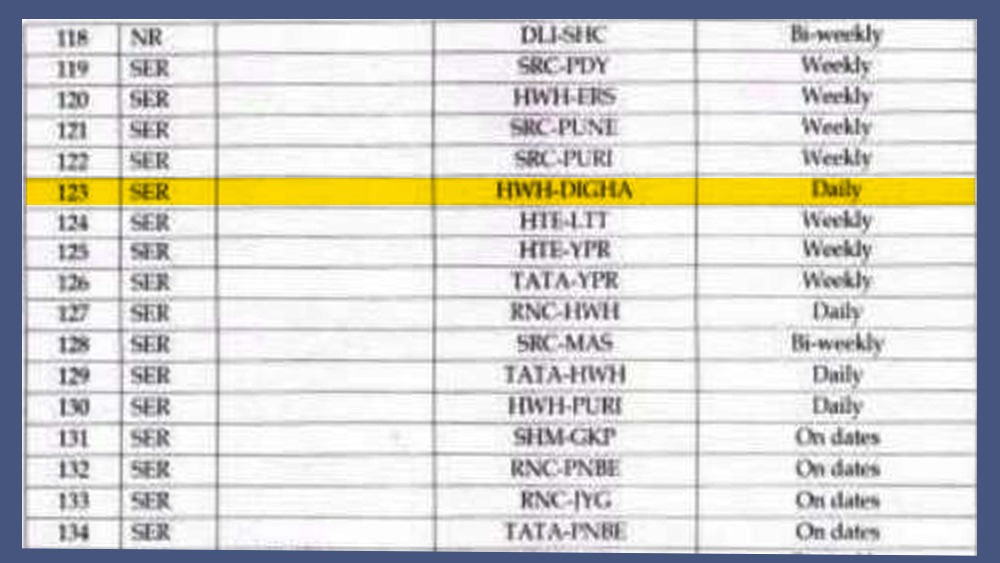 উৎসবের মরসুমে রেল ২০ অক্টোবর থেকে ৩০ নভেম্বর দেশে মোট ৩৯২টি স্পেশাল ট্রেন চালানোর সিদ্ধান্ত জানিয়েছে। তার মধ্যেই বাঙালির জন্য বড় সুখবর এনে দিল দিঘাগামী ট্রেন চালু হওয়ার খবর। করোনা আবহে দীর্ঘদিন নিয়মিত ট্রেন চলাচল বন্ধ। এর ফলে বাঙালির প্রিয় সৈকত শহর অনেকদিন প্রায় একলা কাটিয়েছে। এবার সাগরের মজা নেওয়ার সুযোগটা এসে গেল।